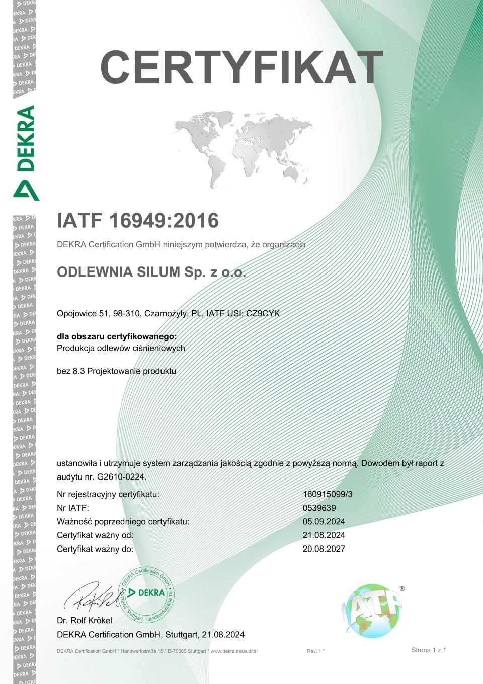 Certyfikat IATF - Odlewnia SILUM